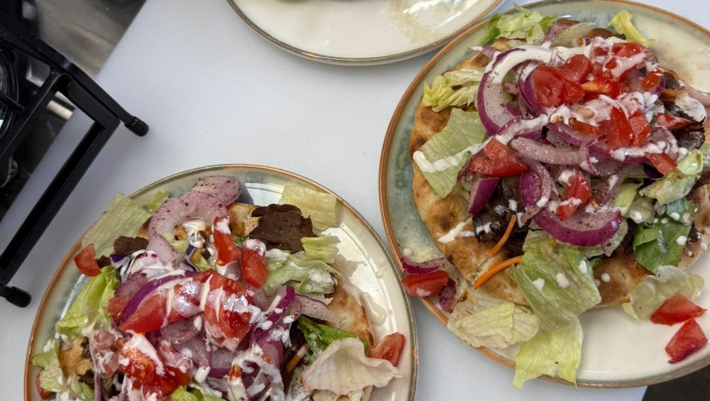 Enjoy our signutaredish the authentic flavors of Türkiye in a delicious bowl featuring juicy slices of sliced lamb and beef gyros marinated with savory spices and herbs over crisp romaine lettuce. Topped with seasoned onions, olives and a creamy garlic-yogurt sauce, this doner bowl is a feast for the senses.